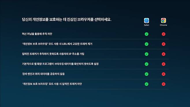 뿐만 아니라 애플 사파리는 링크추적 방지 기능, 고급추적 및 지문보호 기능 등 지속적인 신규 기능들을 지속적으로 도입하고 있다고 하는데요. 사용자는 기술적인 보안 지식이 없더라도 그냥 안심하고 사용할 수 있는 것이기도 합니다.