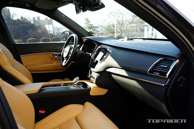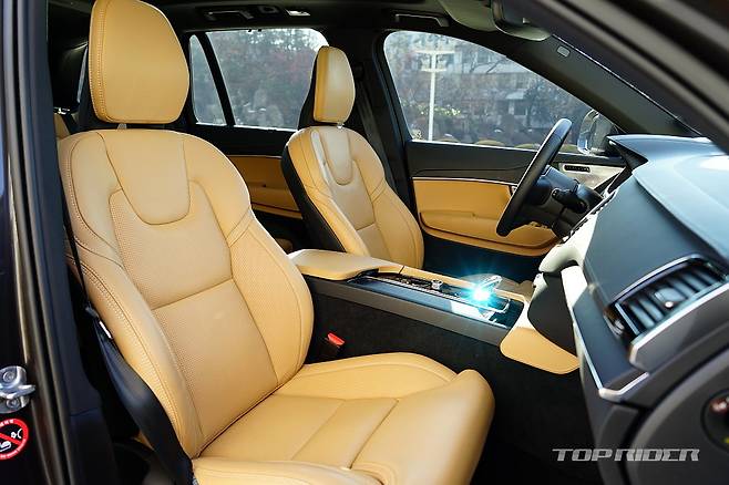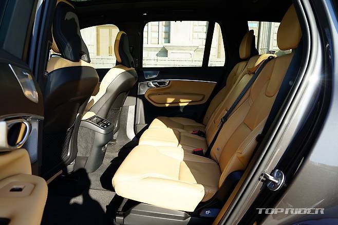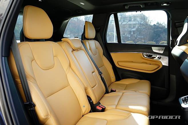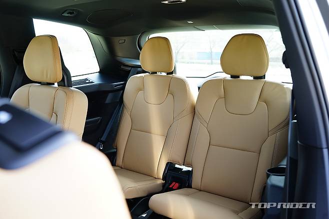 실내에서 눈에 띄는 부분은 1열부터 3열까지 풀사이즈 시트로 구성된 점이다. SUV의 경우 1열을 제외한 2열과 3열은 다소 작거나 착좌감이 부족한 시트로 구성하는 경우가 있는데, 볼보의 시트 디자인은 큰 차이가 없다. 시트의 쿠셔닝과 소재, 구조는 볼보스럽게 이상적이다.
