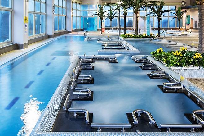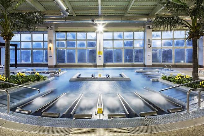 가장 인기 있는 시설은 대형 노천 온천풀로, 물속에서 수압 마사지를 받을 수 있는 자쿠지와 뜨거운 스파가 마련되어 있어 피로 회복에 효과적입니다.