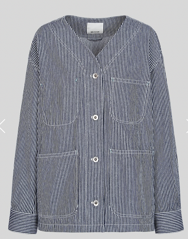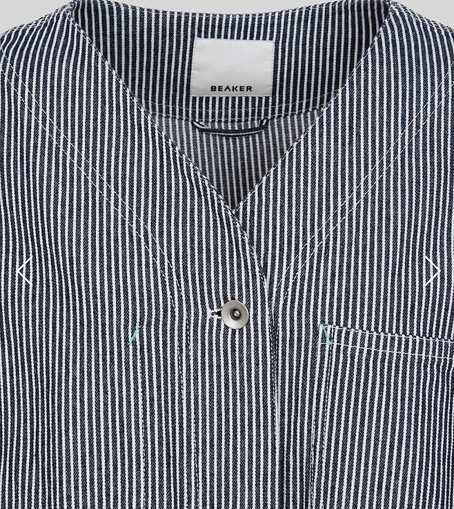 사진 속 자켓 정보 - BEAKER ORIGINAL Women Stripe Collarless Work Jacket