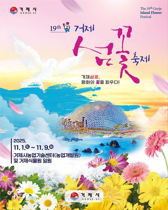 가을의 끝자락, 남해의 푸른 바다를 품은 거제도에 향긋한 꽃내음이 가득 번집니다. 다가오는 **2025년 11월 1일(토)부터 11월 9일(일)**까지, 제19회 거제섬꽃축제가 화려하게 개막합니다. 올해 축제의 주제는 “거제섬꽃, 평화의 꽃을 피우다”. 가을꽃과 국화조형물이 어우러진 꽃의 도시 거제에서 자연, 문화, 그리고 평화의 메시지를 함께 느낄 수 있는 9일간의 특별한 가을 축제가 펼쳐집니다.