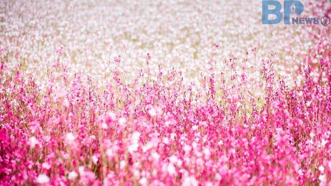 초록이 짙어지는 여름, 생각지도 못한 풍경이 눈앞에 펼쳐진다. 분홍빛이 가득한 들판. 겨울의 끝자락에서 피어났던 벚꽃이나 진달래가 아니다. 바로 여름의 문턱에서 피어나는 가우라, 나비 바늘꽃이다.