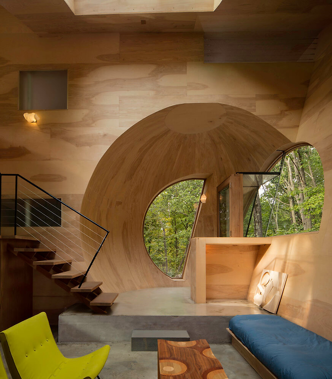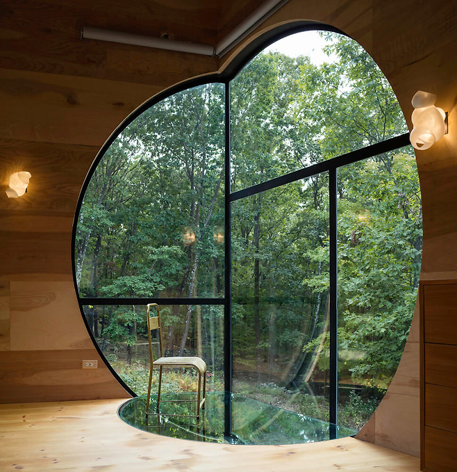 숲의 중심에 위치한 주택의 외관은 일반 모던한 주택 같아 보이지만, 내부는 숲 속을 탐험하는 듯한 착각을 불러일으킨다.