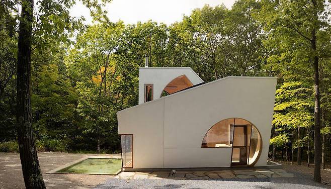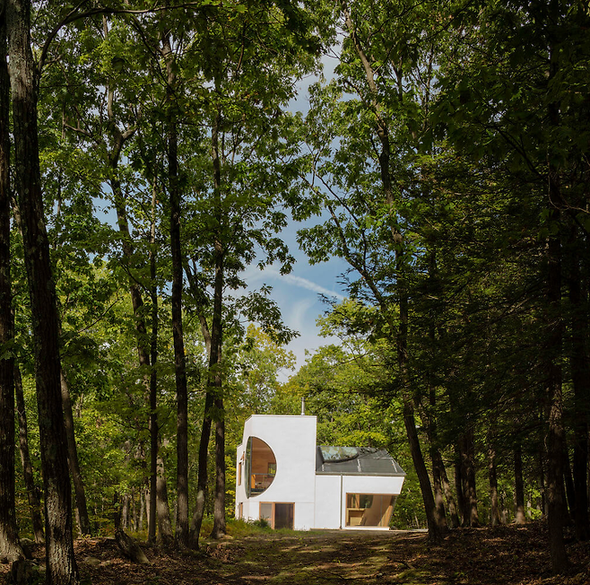 26평 남짓한 공간에 세워진 주택은 기존에 사각형 주택과 달리 마름모꼴과 구형이 교차된 형태의 외관만으로도 호기심을 불러일으키는 공간이다.