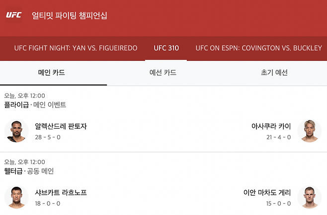 UFC 310 경기 중계 및 시청 안내