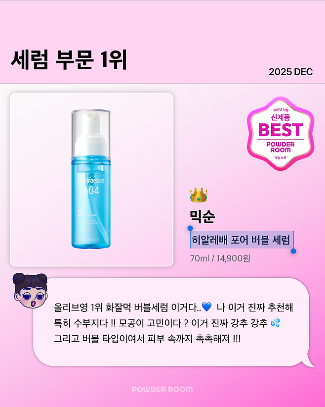세럼단계야 명심해 !! 심지어 버블 타입의 세럼이여서 피부 속 안까지 수분이 채워지는 느낌이야