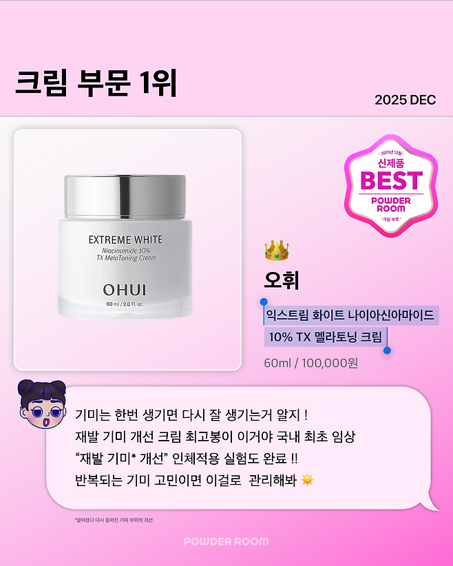 재발되는 지긋지긋한 기미에 완전 추천해 ㅎㅎ 국내 최초로 임상 실험도 완료한 제품이니까