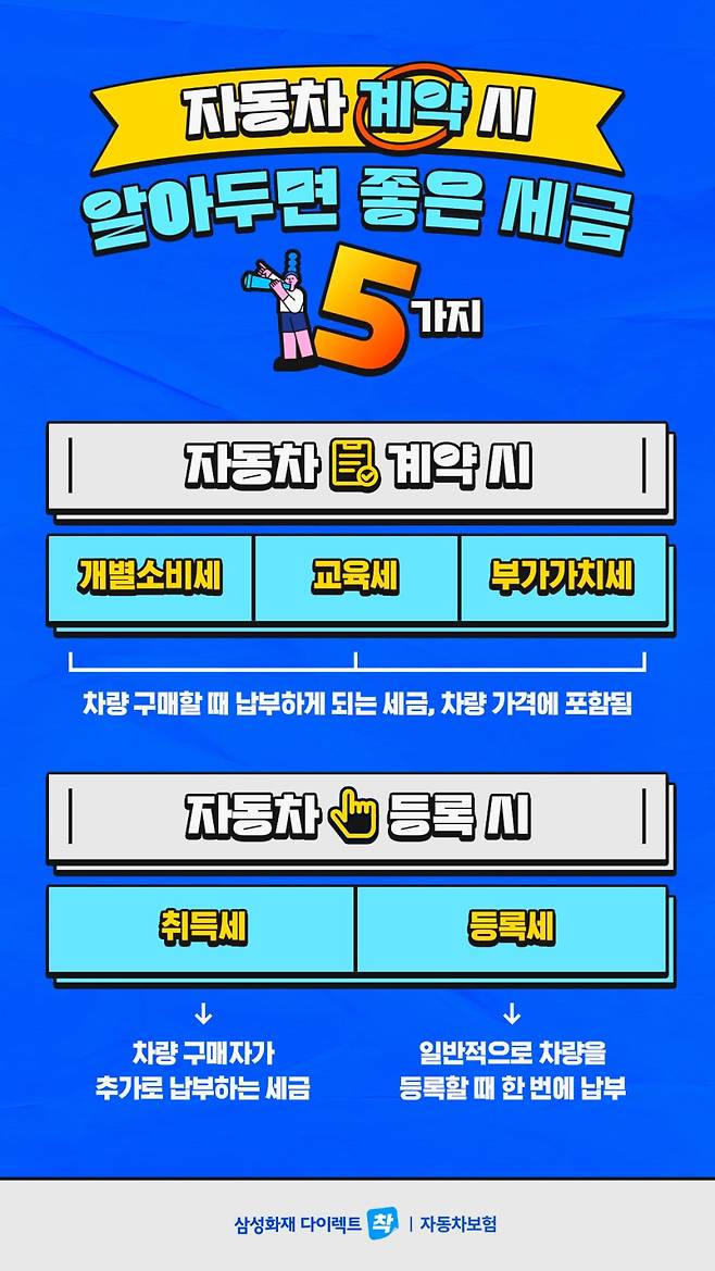 어렵게만 느껴지는 자동차 관련 세금들과 자동차보험! 하지만 알고 나면 정말 간단한데요. 이번 기회에 삼성화재 다이렉트와 함께 똑똑하게 차량 구매를 시작해보세요.