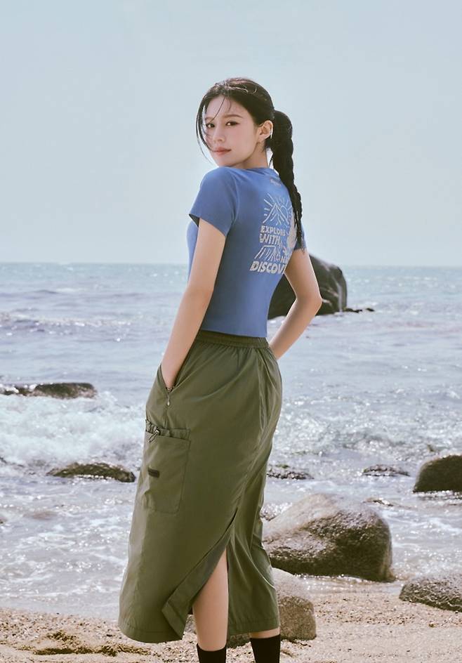 화보 속 고윤정은 냉감 기능성이 탑재된 버뮤다 카고 쇼츠와 카고 스커트에 반팔 티셔츠를 착용하고 일상뿐만 아니라 스타일리시하게 떠날수 있는 휴가룩을 제안했다.