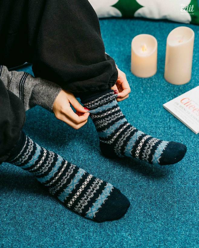 수족냉증이 심한 친구에게서 수면양말을 꺼리는 이유를 들은 적 있다. 무작정 두꺼운 양말을 신으면 발에 습기가 차고, 땀이 식어 축축해지면 다시 얼음장같이 차가워지기 때문이라고. 히트텍 양말은 포근한 소재에 보온 기능 덕분에 열이 금방 식지 않도록 어느 정도 보존해 준다. 노르딕 패턴으로 디자인까지 깜찍한 건 덤이다.
