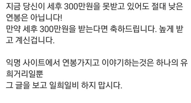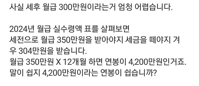 한달 월급 세후 300만원 받기는 사실 굉장히 어렵다