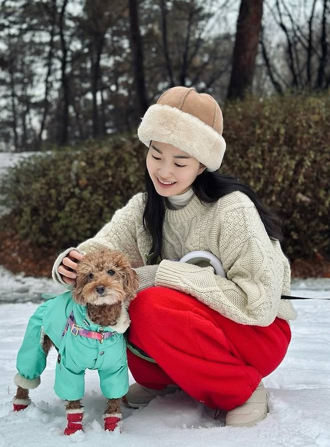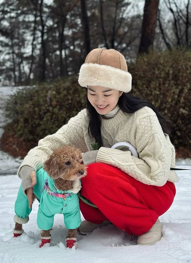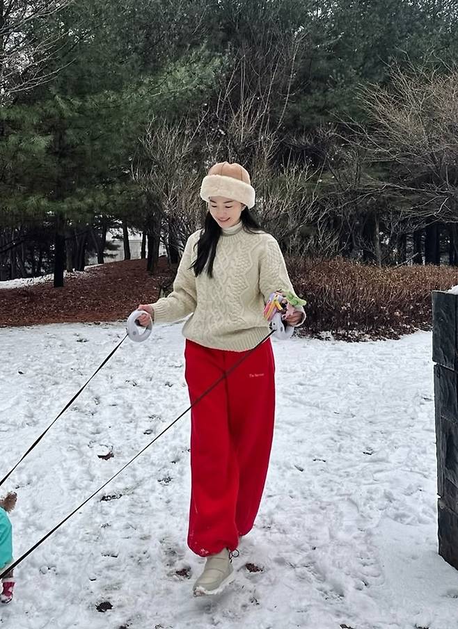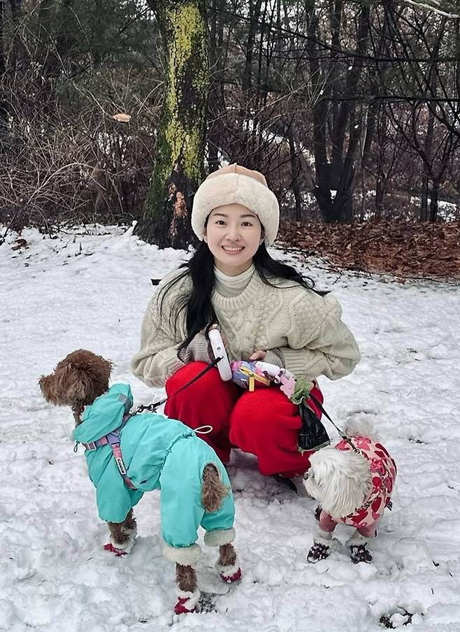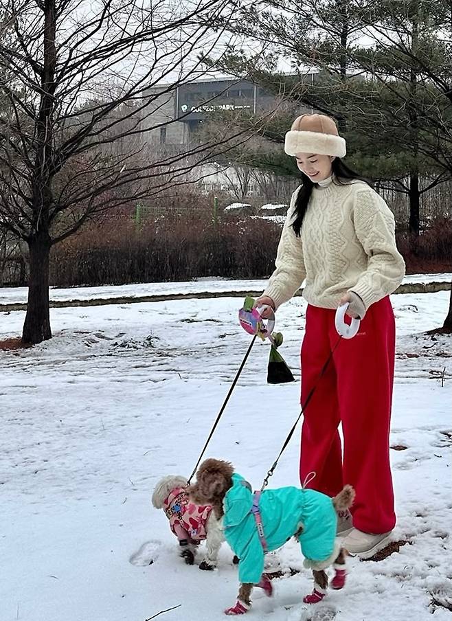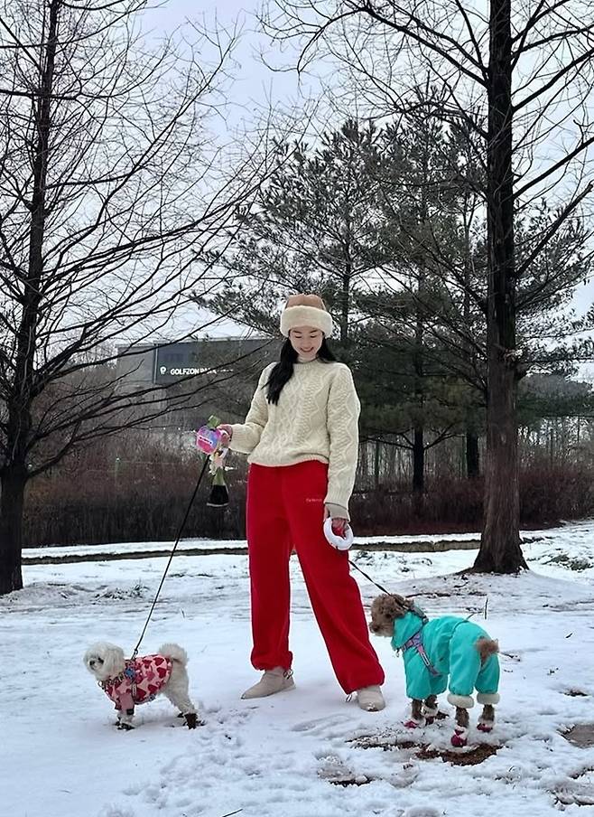 류이서는 8일 자신의 채널에 “그저께 뒷동산 누가 저렇게 귀여운 눈사람을 만들었지…”, “눈 좋아하는 우리 강아지들, 맛있는 저녁 드세요”라는 글과 함께 산책 사진을 게재했다.