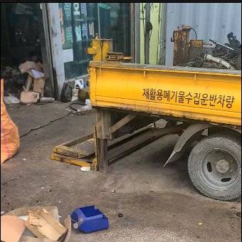 "갑자기 노란색 재활용 센터 차가 와서 카센터 입구를 막아버립니다...."