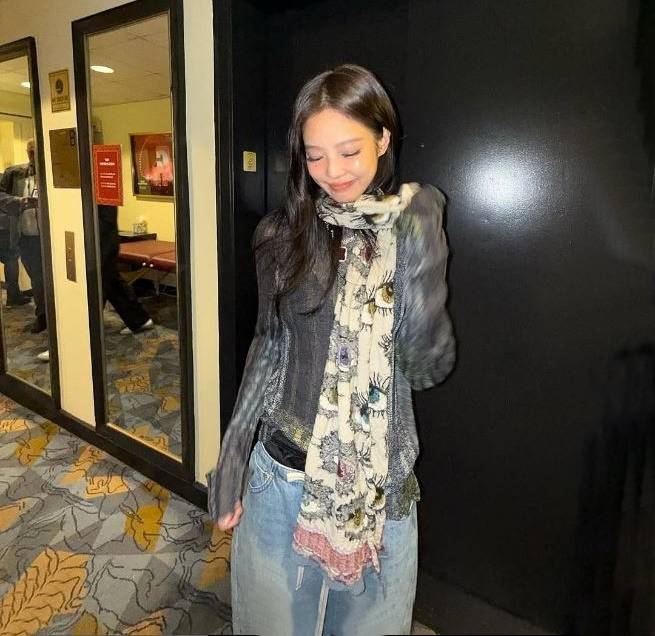 블랙핑크(BLACKPINK) 멤버 겸 솔로 가수 제니(JENNIE)가 머플러로 끝낸 보헤미안 잇걸룩으로 시선을 사로잡았다.