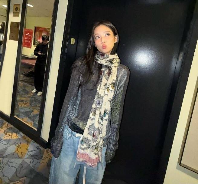 제니는 13일 자신의 인스타그램에 "RUBY EXPERIENCE"라는 짧은 멘트와 함께 머플러로 멋낸 일상룩 사진 여러장을 게재했다.