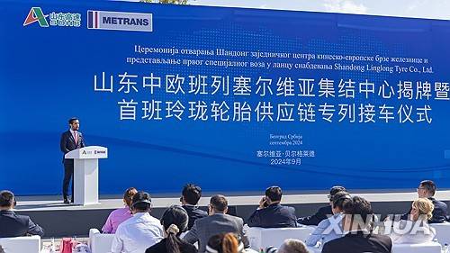 (240908) -- INDJIJA, Sept. 8, 2024 (Xinhua) -- Tomislav Momirovic, Serbian minister of domestic and foreign trade, speaks during an inauguration ceremony of the Shandong China-Europe Express Railway Assembly Center held in Indjija, Belgrade, Sept, 7, 2024. TO GO WITH "New China-Europe express railway assembly center launched in Serbia" (Photo by Wang Wei/Xinhua)