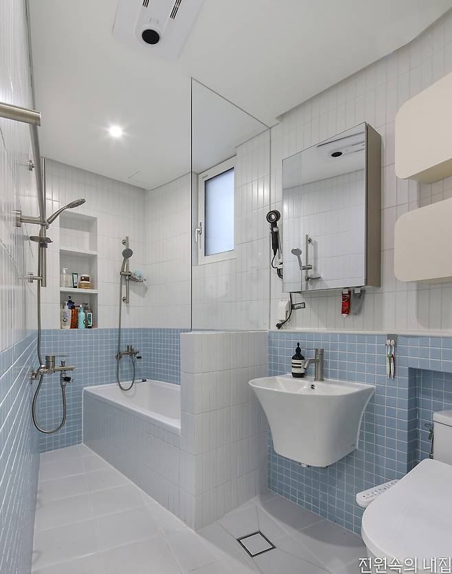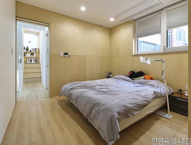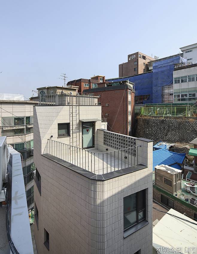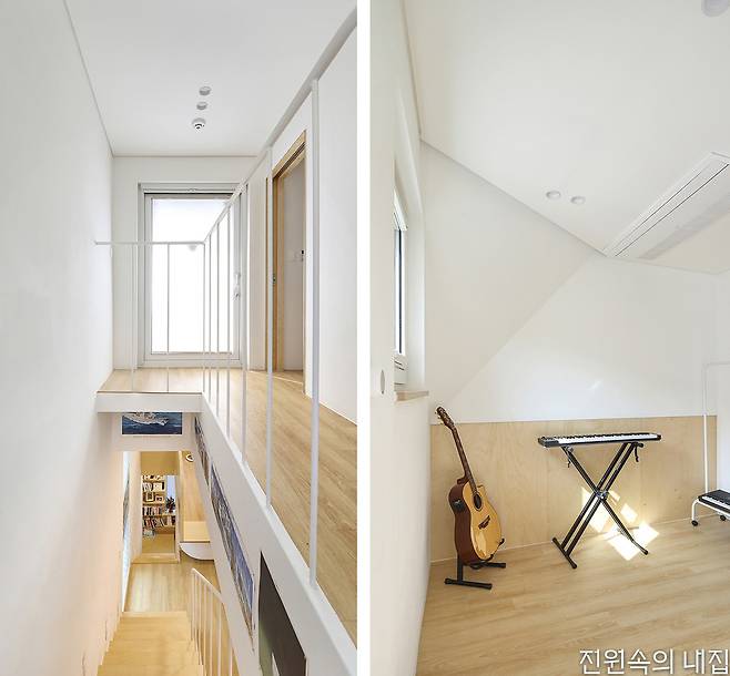2층에는 부부 침실과 세탁실, 욕실이 놓였다. 침실을 콤팩트하게 가져가는 대신 욕실의 면적을 넉넉하게 잡아 생활 편의와 만족도를 높였다. 4층에는 또 다른 침실과 화장실, 그리고 테라스가 놓였다. 이 테라스에서는 부부가 이 동네를 선택한 이유 중 하나였던 인왕산을 조망할 수 있다.