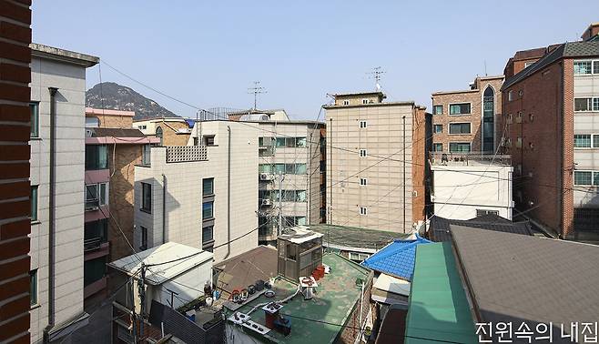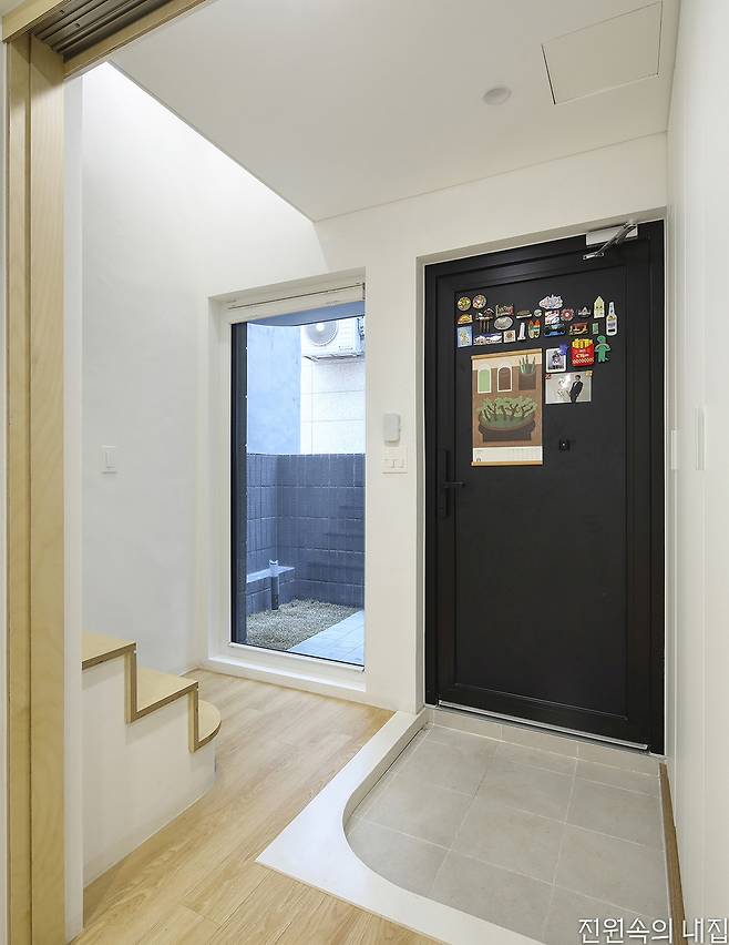 건축주 박선호, 박채형 씨 부부는 공사가 시작되는 현장을 보고 많은 생각이 오갔다고 당시를 떠올렸다. 부부, 특히 남편인 선호씨는 오랫동안 내 땅에 내 집을 지어 사는 게 꿈이었다. 산악 마라톤이 취미였던 그는 북악산과 인왕산을 누비며 서촌과 성북동을 유심히 살폈다. 그러다 인왕산이 내다보이는 이 자리를 찾았다. 땅이 넓지는 않았지만, 합리적인 설계라면 충분한 집이 되리라 생각했던 부부였다. 삼간일목 건축사사무소와 함께한 설계는 충분히 만족스러웠고, 합리적이었다. 하지만 구옥이 철거되고 난 후 맞닥뜨리게 된 18평 대지는 그 느낌이 다를 수밖에 없었다. 부부는 짧지 않은 7개월이란 긴 공사가 끝난 후 새집을 만났다. 새집은 그간의 걱정을 기우로 만들기에 충분했다.