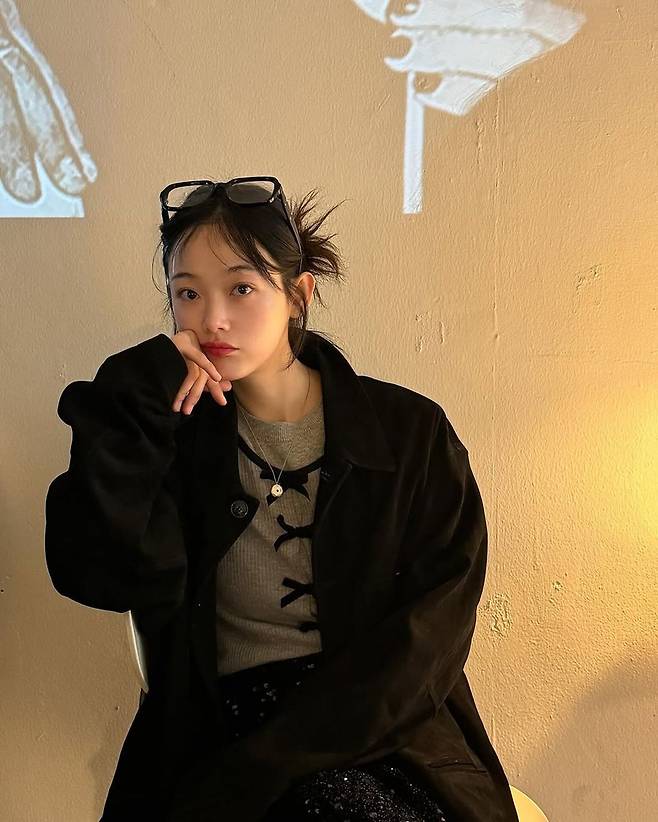 헤어는 자연스럽게 묶은 번 헤어로 내추럴한 느낌을 더했고, 머리 위로 올려 쓴 안경은 마치 ‘무심한 듯 시크한’ 스타일을 완성한다. 살짝 물기 머금은 듯한 생얼 메이크업도 그녀 특유의 맑고 투명한 이미지를 배가시키는 요소다. 목걸이 하나만 가볍게 매치해 전체 스타일에 방해되지 않도록 조율한 디테일도 눈에 띈다.