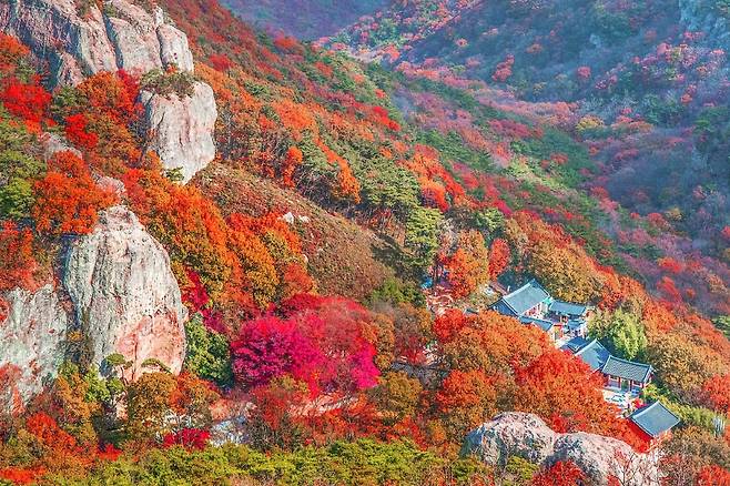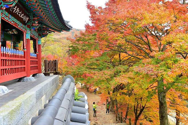 사찰 주변으로 단풍나무와 은행나무가 늘어서 있어 걸음을 옮길 때마다 황금빛과 붉은빛이 어우러진 풍경을 마주할 수 있습니다.