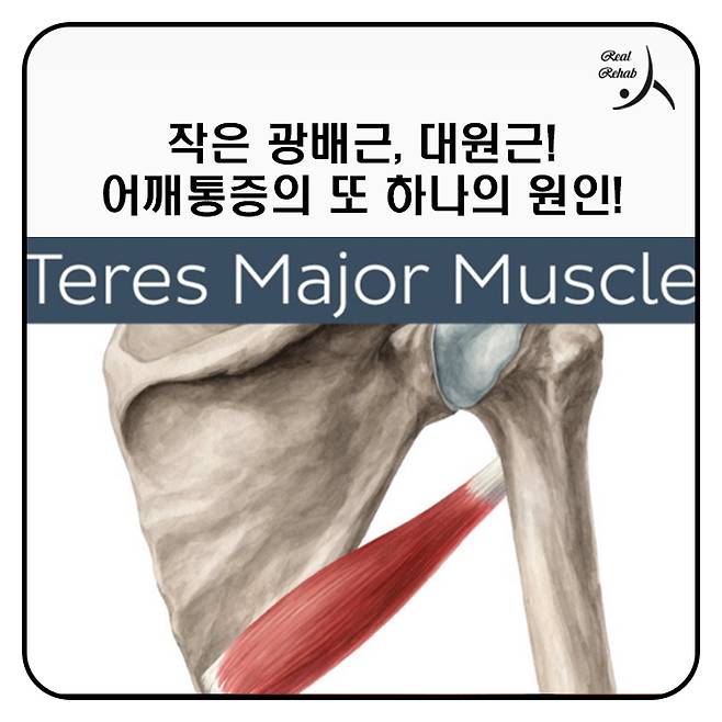 대원근은 견갑골의 하각에서 시작해서 상완골두의앞쪽에 붙어 있는 근육으로 우리 팔을 신전(팔을 뒤로젖히는것)과내회전(팔을 안으로 돌리는 것)을 담당하는 역할을 합니다~
