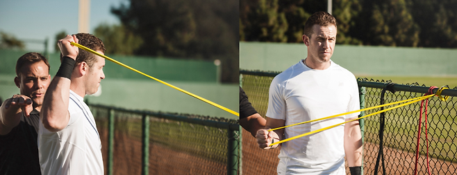 이런경우에는 반드시 대원근을 포함한 내회전에 해당하는 근육들인 대흉근과광배근등등의 단축여부도 같이 확인해서 사진과 같은 폼롤러와라크로스볼 같은 도구를 활용해서 푸시는 것이 도움이 많이 됩니다~