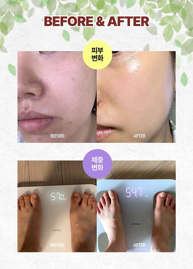 3주 정도 섭취했더니 푸석하고 생기 없던 피부가 화사하고 깨끗해졌으며, 몸 전체의 컨디션이 상당히 상쾌해졌다.
