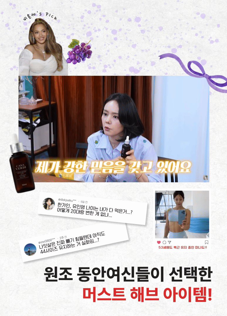 그밖에 원조 청바지 여신으로 유명한 8등신 여배우 유인영 역시 다이어트와 건강관리를 위해 여행 중에도 레드와인 비니거를 챙겨 먹는 모습을 유튜브를 통해 선보였다.