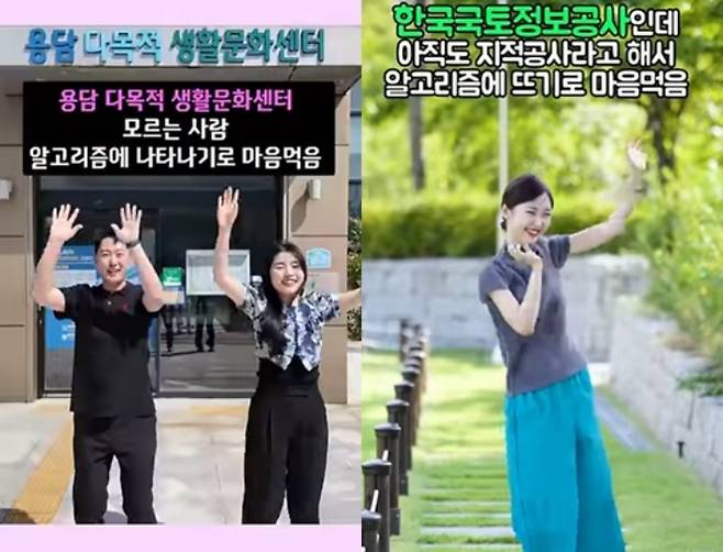 또 각 지방의 관공서들이 단순한 동작만 반복해 쉽다는 점과 문구를 자유롭게 삽입할 수 있는 점을 높이 사 홍보를 목적으로 밈을 활용한 영상을 앞다퉈 게시하면서 더 유명해졌다. 사진=유튜브 '제주시'·'LX한국국토정보공사' 캡처