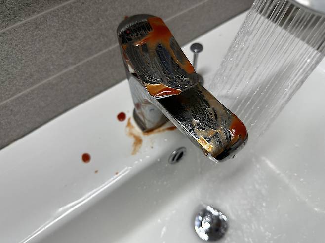 이제는 남는 일회용 케첩은 버리지 마시고 물때가 가득한 수전에 발라보세요!
