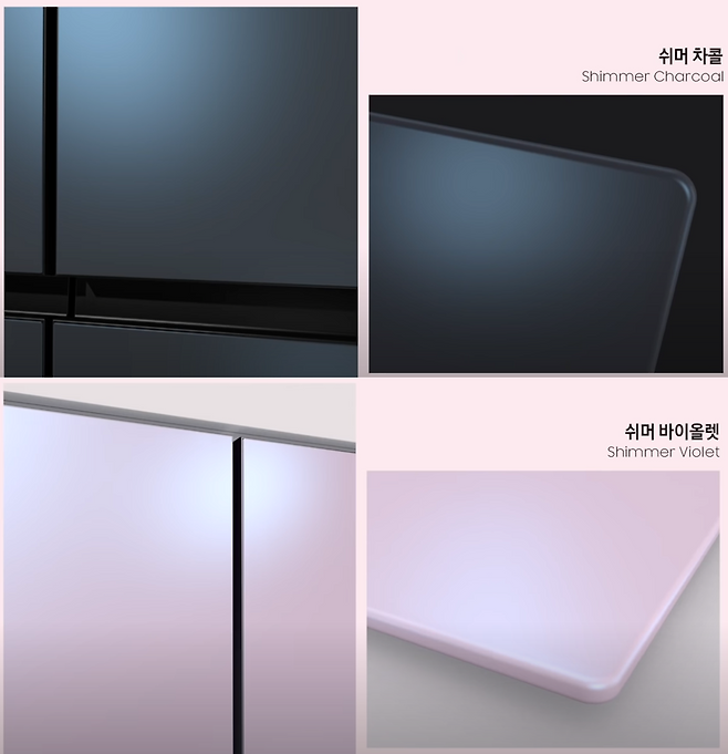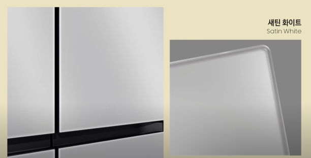 이로 인해 21년에는 글래스 재질의 화이트 냉장고를 가지고 싶다면 광택이 많은 글램 재질로만 선택할 수 있었는데, 22년에는 무광의 새틴 재질의 화이트도 선택할 수 있어 선택의 폭이 넓어 졌습니다.