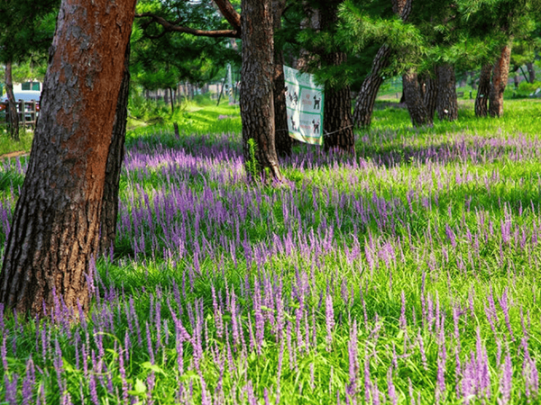 노송의 깊은 초록과 맥문동의 진한 보라가 만들어내는 색 대비는 매우 인상적인데요. 이곳의 맥문동 군락은 크지는 않지만 소나무 아래 적절히 퍼져 있어 숲길 전체가 차분한 분위기로 물듭니다. 걷다 보면 절로 속도가 느려지고, 오래 머물고 싶은 마음이 들 정도입니다.