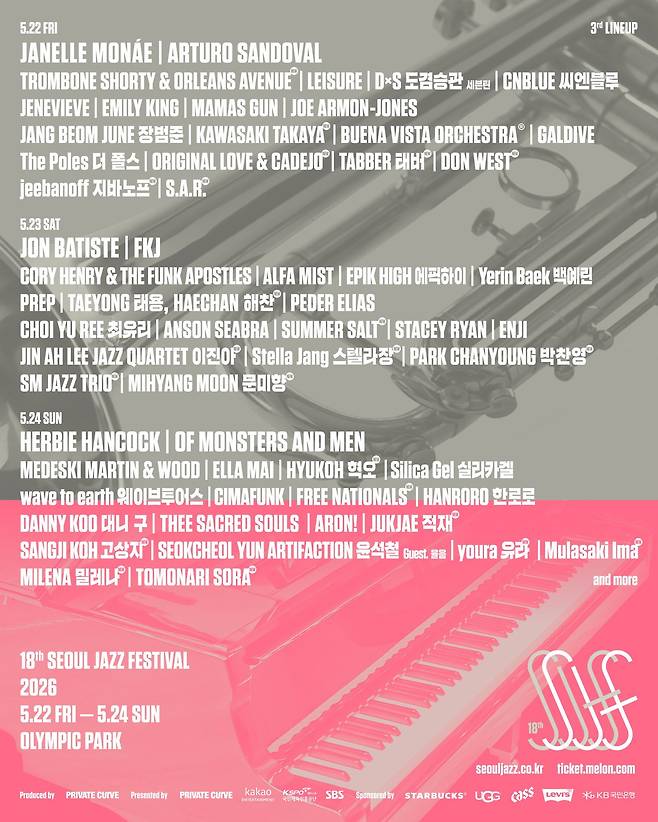 '제18회 서울재즈페스티벌 2026(The 18th Seoul Jazz Festival 2026)(이하 서재페)'이 3차 라인업 22팀을 발표했다.