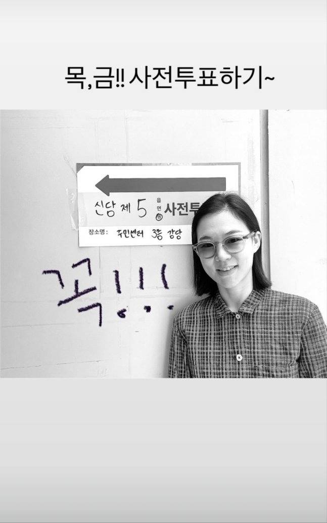 직접 등장 없이 투표소 안내판만 찰칵. 심플 그 자체로 오히려 더 눈에 띈 센스 넘치는 인증샷.