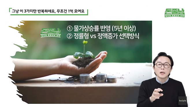 첫 번째 방법은 물가 상승률을 반영해 보는 것입니다. 그동안은 3년, 4년, 5년 저축할 때 인플레이션 이야기를 하지 않았습니다. 그런데 올해부터는 5년에 1억 만들기 저축을 할 때도 물가 상승률을 반영해야 합니다.