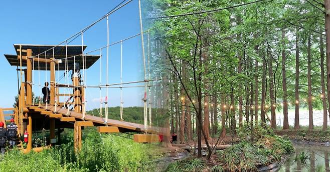 산 속 자연과 조화를 이루며 설치된 이동체험, 클라이밍 등의 어드벤처 체험도 즐길 수 있는데요. 휴양림 전경을 한 눈에 내려다볼 수 있는 온실 식물원, 개운하게 자연을 감상하며 스릴을 즐길 수 있는 짚라인 등 체험 시설을 이용할 수 있습니다.