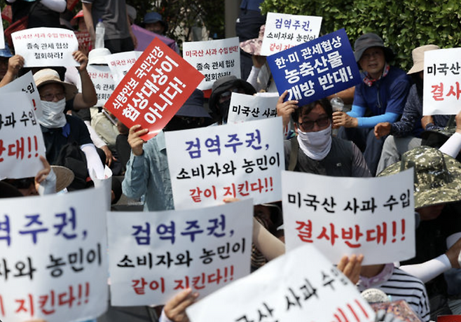 한편, 국내 농가의 반발도 커지고 있습니다. 사과 재배 농가 등은 “미국산 농산물 수입 확대는 국내 농업 기반을 무너뜨릴 수 있다”며 지난달 31일 정부세종청사 앞에서 집회를 열었습니다.