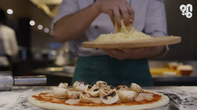 “기본적으로 피자 도우라는 게 그냥 밀가루와 이스트와 물, 다음에 약간의 기름 식용유 이 정도가 끝이에요. (일반)도우 같은 경우엔 물이 들어가고 밀가루와 반죽이 돼서 부푸는 과정을 거치잖아요. 그런데 씬도우 같은 경우에는 물이 거의 안 들어가요. 그냥 단순히 밀가루의 글루텐과 그 이스트의 온도만을 가지고 발효 과정을 거쳐서 이 밀가루들을 합치는 거거든요.”