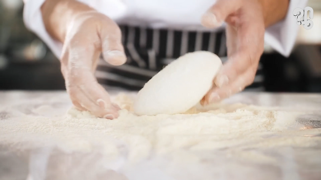 “보통 일반 도우 같은 경우에는 2시간 정도 (발효)하는, 2시간 정도는 했던 걸로 기억은 해요. 근데 씬도우 같은 경우에는 거의 24시간을 한다고 생각하시면 되요.”