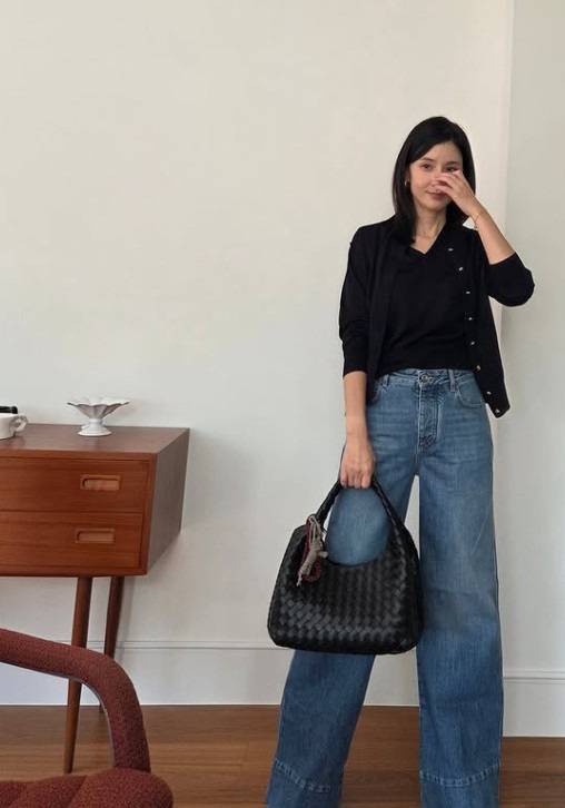 상의는 이너와 카디건의 톤을 통일해 편안한 무드를 연출했네요.