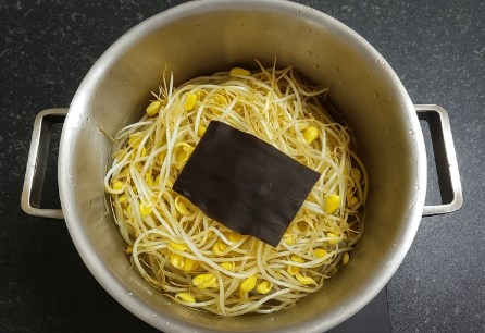 콩나물, 다시마, 생수, 국간장, 맛술을 함께 넣고센 불 5분 → 약불 15분 끓인 뒤 식힙니다. 다시마는 건져내세요.