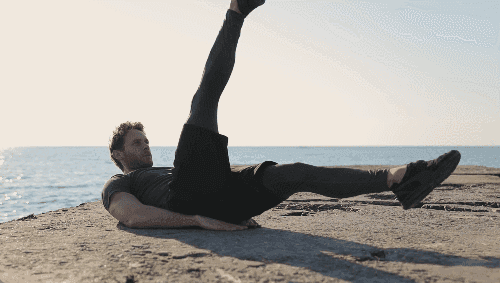 매트에 등을 대고 눕습니다. 다리를 공중으로 들어 올려 준비합니다. 상체도 들어서 복부를 자극하세요. 왼발을 내렸다가 다시 들어 올리며, 동시에 오른발을 내립니다. 발을 번갈아 가며 교차하듯 빠르게 움직입니다.