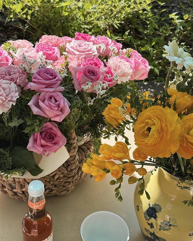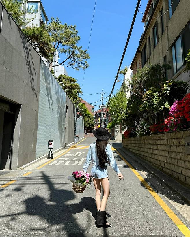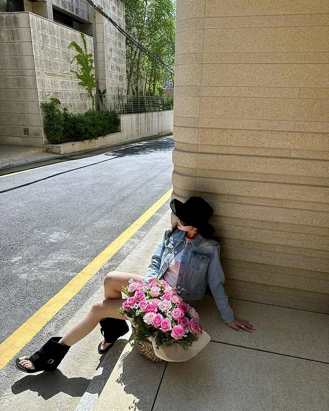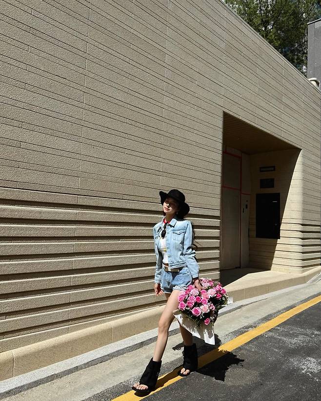독특한 실루엣이 캐주얼한 데님룩에 묘한 긴장감을 줬고, 꽃바구니 소품과 함께한 연출 컷에서는 그녀 특유의 연출 센스도 엿볼 수 있었어요.