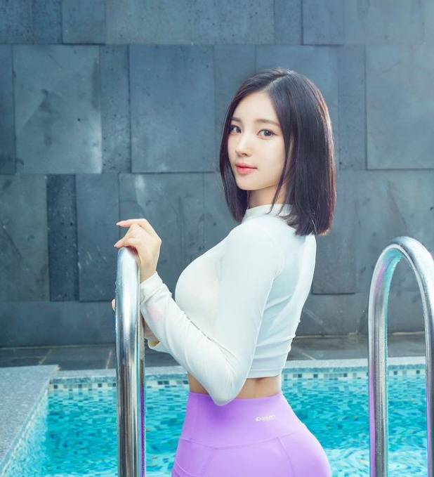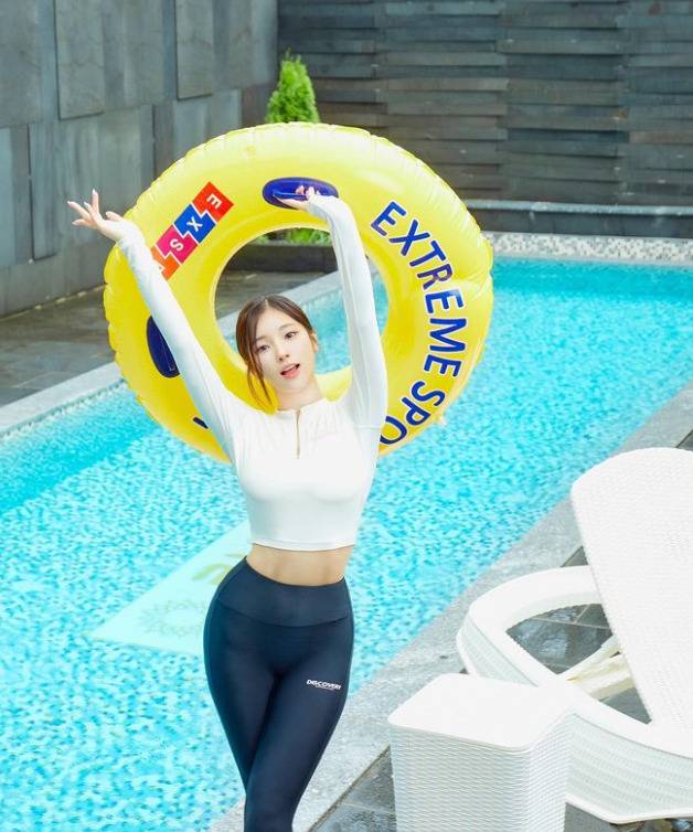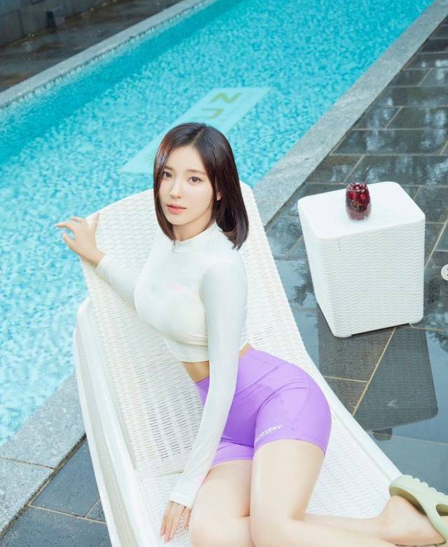 소희는 래쉬가드룩을 선보였다.
