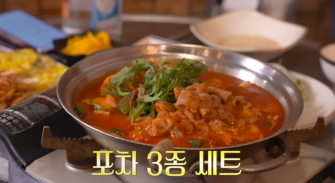 미연은 찜질 후 바로 식당으로 가서 국물요리 + 육전 + 파절이까지 제대로 먹어요.