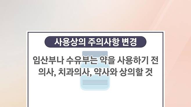 변경안 내용은 임산부나 수유부는 약을 사용하기 전 의사, 치과의사, 약사와 상의할 것이라고 돼 있습니다.