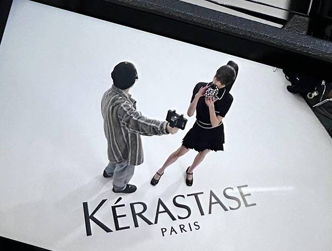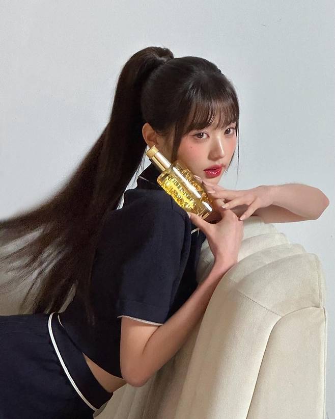 장원영은 4일 공식 인스타그램에 헤어&두피케어 브랜드 케라스타즈(Kérastase) 촬영 비하인드 컷 여러장을 게재했다.