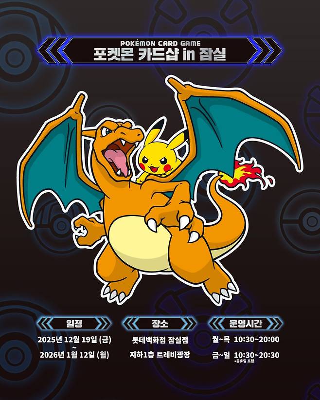 이번 팝업의 또 다른 중요한 특징은 포켓몬 카드샵 연계입니다. 메인 팝업은 롯데월드몰 1층 아트리움에서 진행되지만, 포켓몬 카드 게임 팬들을 위한 전문 공간인 ‘포켓몬 카드샵 in 잠실’은 잠실점 본관 지하 1층 트레비 광장에서 별도로 운영됩니다. 따라서 메타몽 굿즈와 포켓몬 카드를 모두 노리는 진성 팬이라면 두 곳을 모두 방문하는 것을 권장합니다.