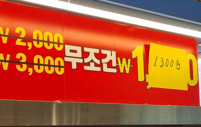 연합뉴스 보도에 따르면 이는 지난 18일 오전 서울 강남구 한 역사에 위치한 이른바 '무조건 1천원 빵집' 직원 손모(70)씨가 빵 매대 옆으로 떡을 진열하면서 한 말이다. 이 빵집에 걸려있던 '무조건 1천원' 현수막 문구는 지난달 '무조건 1천300원'으로 바뀌었다.
