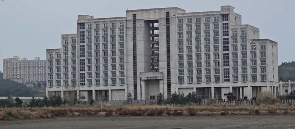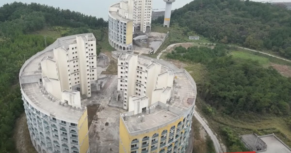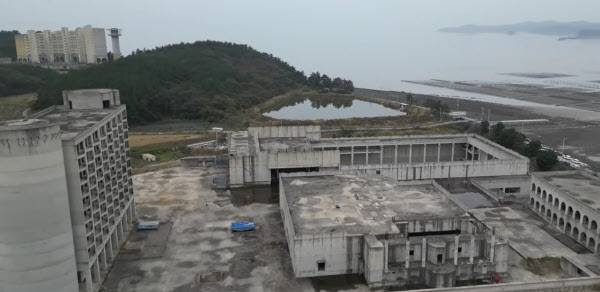 오토캠핑장과 갯벌 체험 등 콘텐츠로 충남 태안반도 일대에서 관광객이 많기로 유명한 몽산포 해수욕장 일대 갯벌을 따라 펼쳐진 널따란 부지를 걷다 보면, 마치 로마시대 콜로세움(원형 경기장)을 연상케하는 초대형 건물이 눈에 띈다. 그런데 이 건물에 가까이 가보면 폐허나 다름 없다. 건물을 짓다 공사를 중단된 지 오래라 빛바랜 외벽에 까맣게 때가 끼어있고, 군데 군데 녹슨 철근이 튀어나와 있어 대낮에도 으스스한 분위기가 물씬 난다.